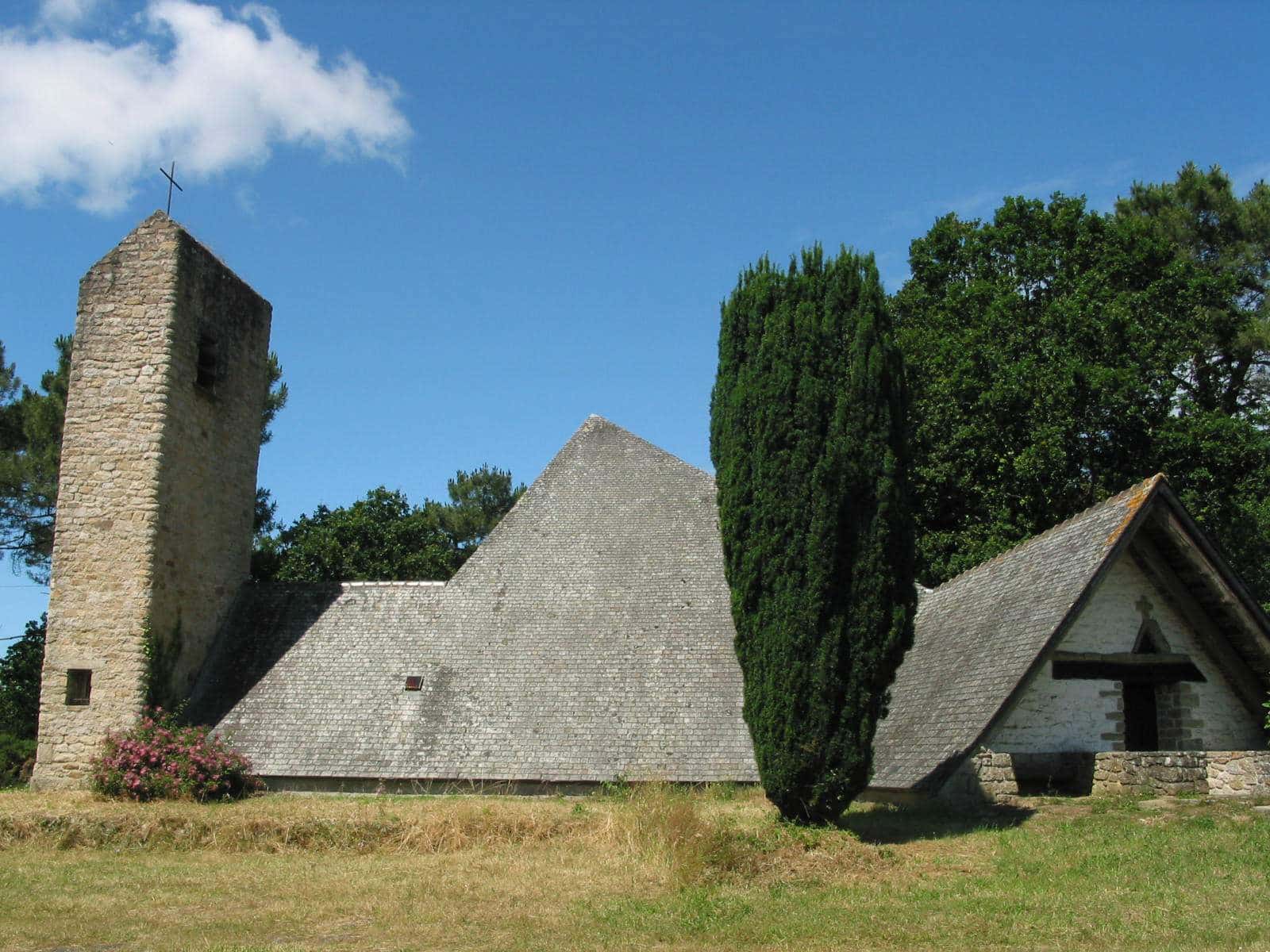C’est une chapelle moderne dans un écrin de verdure. Son appellation serait née des nombreux automobilistes qui s’y arrêtaient pour y faire brûler un cierge. Elle est l’œuvre de l’architecte Yves Guillou, considéré comme l’architecte artisan de la modernisation de la Bretagne.