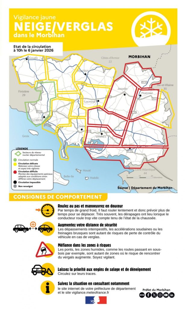 Neige-verglas : point de situation ❄️🟡 Depuis 10h ce mardi 6 janvier, le niveau de vigilance neige-verglas dans le département du Morbihan est abaissé à vigilance […]